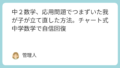 - 中2で成績が下がったあとにやったこと。順位100番ダウンからの家庭学習見直し法中学2年生になって、これまで順調で成績も心配なかったので、「家庭学習だけで大丈夫」と思っていました。テスト前の… 続きを読む: 中2で成績が下がったあとにやったこと。順位100番ダウンからの家庭学習見直し法