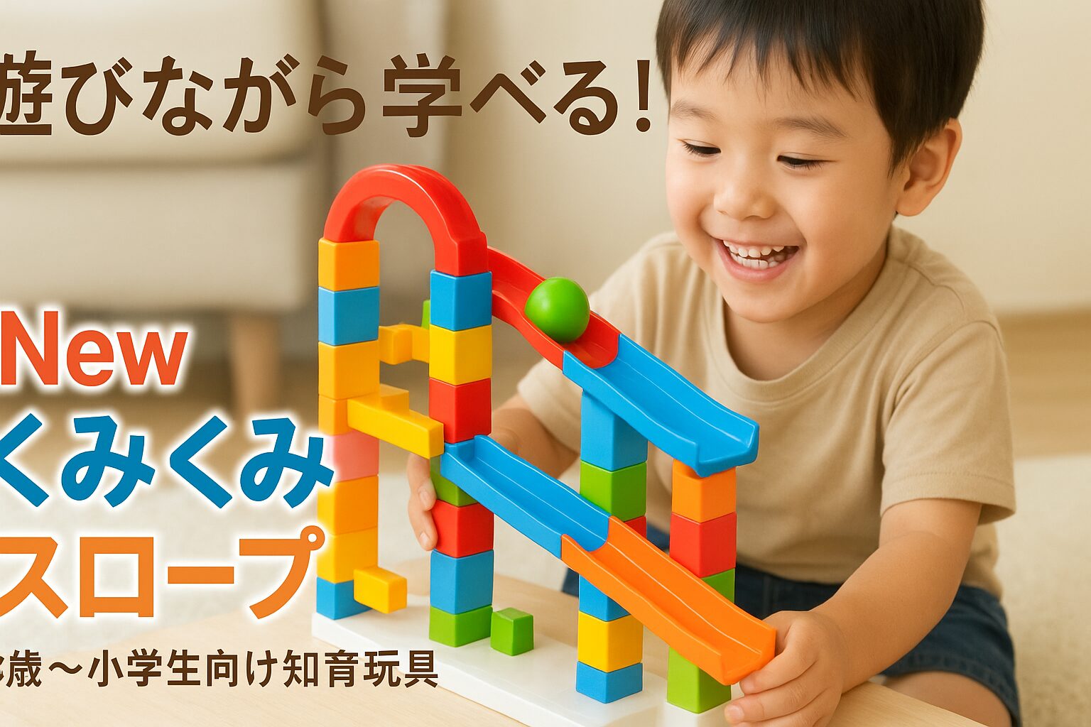 子どもが遊びながら学べるおもちゃや、知育玩具はたくさんありますが、うちの子が大好きだったのがNEWくみくみスロープ です。実際に遊ばせてみた体験談を交えながら、使い方やおすすめの年齢などをご紹介します。