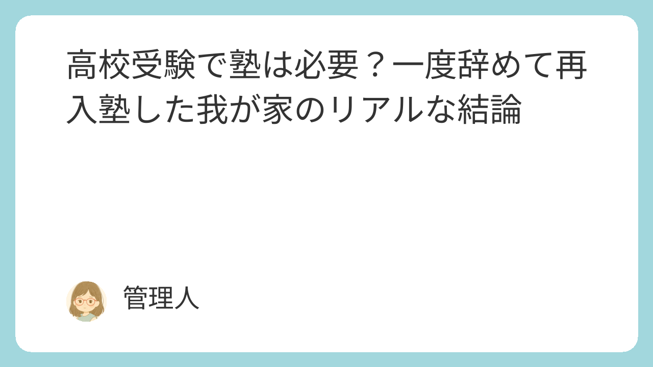 実際に一度塾に通い、うまくいかずにやめた経験があります。