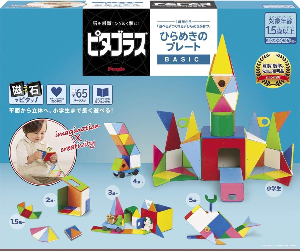 「ピタゴラス」は、ピープル株式会社が販売している磁石でくっつくプレート型の知育ブロックです。
